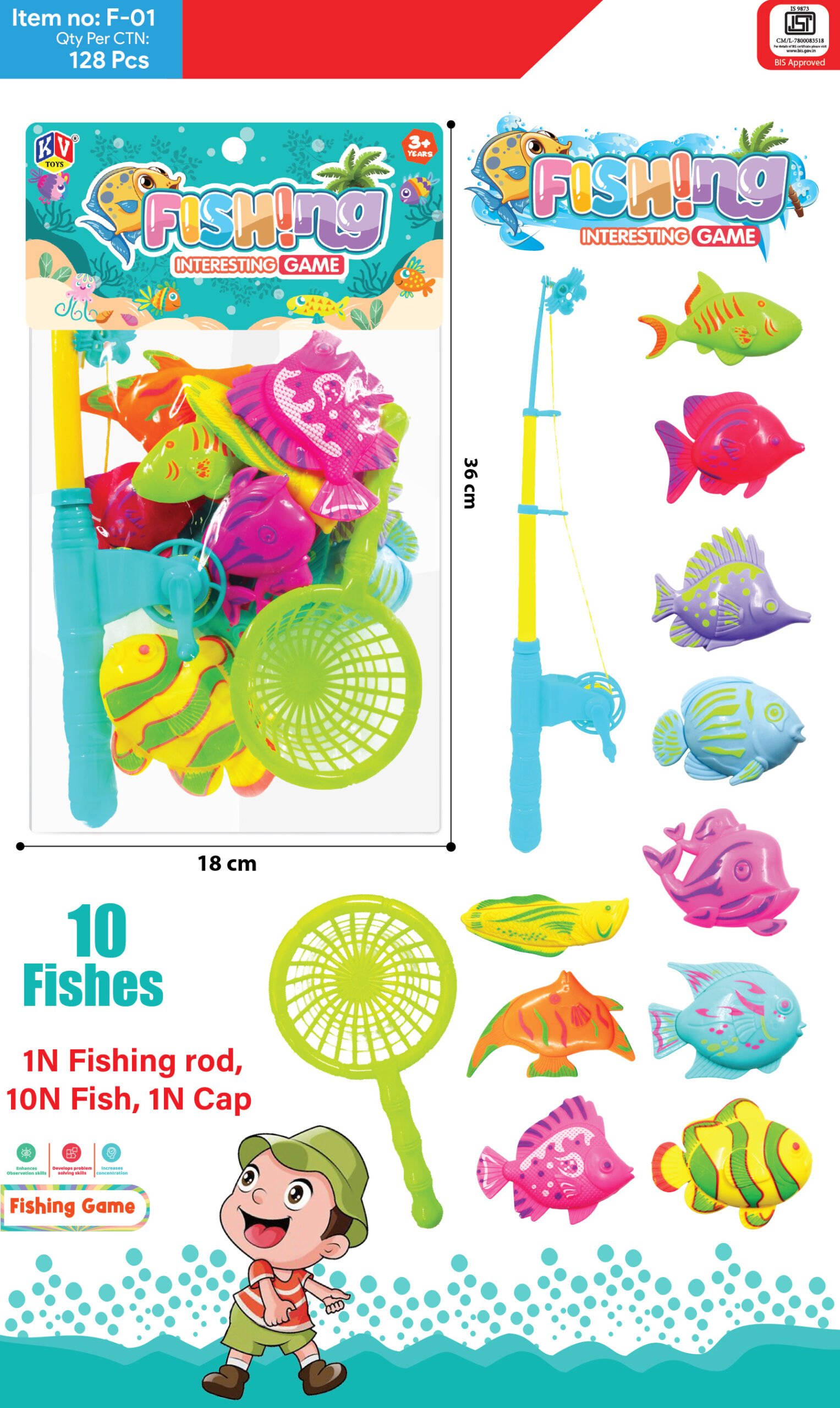 Fishing Game – 10 Pcs Fish + 1 Fishing Rope + 1 Handle Net (F-01)